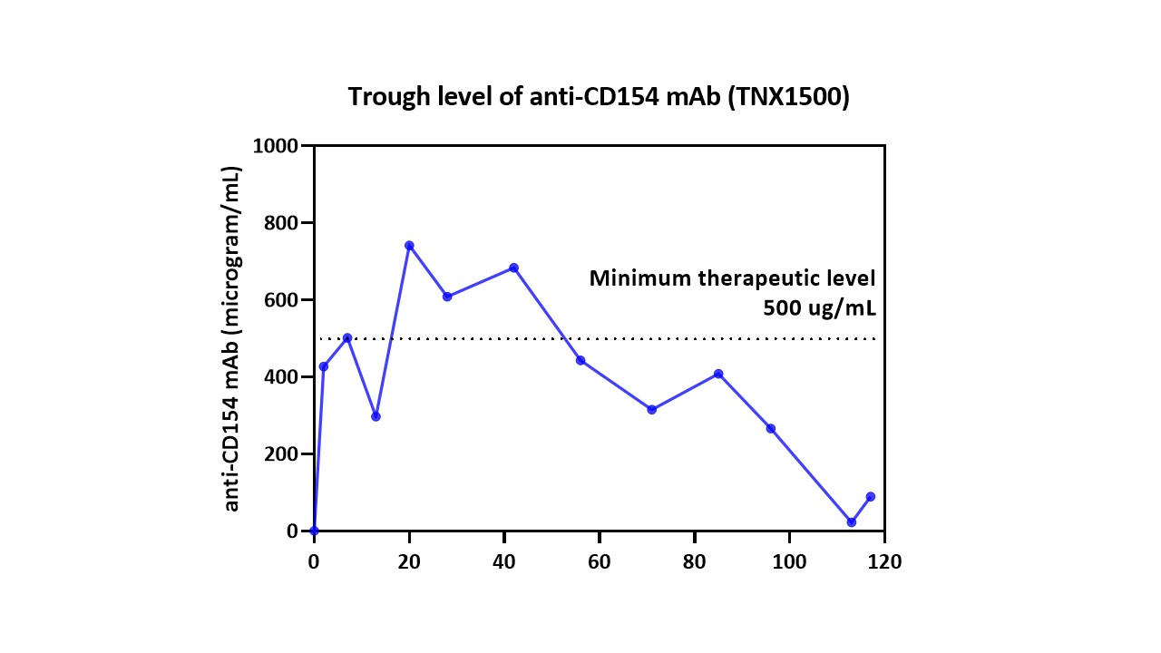 Introduction: Blockade of co-stimulation pathways by monoclonal antibody therapy has prolonged gene-edited pig graft survival in nonhuman primates (NHPs). However, the optimal regimen (dose, dosing schedule, therapeutic trough level) remains uncertain. Membranous nephropathy causes nephrotic syndrome with loss of high molecular weight proteins, specifically IgG. Our hypothesis is that this may lead to reduced trough levels of therapeutic anti-CD154mAbs.