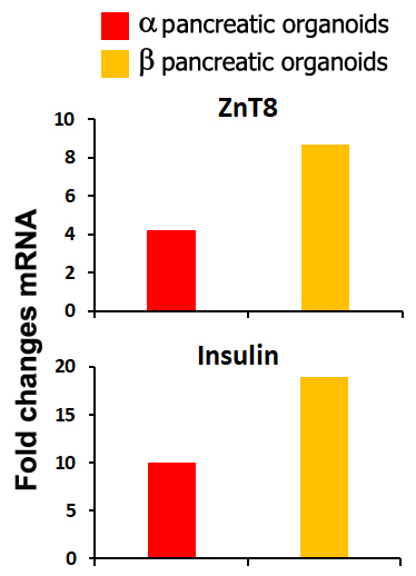Results: Variations in mass density, obtained on comparable-size organoids, demonstrated, tush correlations between biophysical and functional properties that allowed for direct comparison of biophysical characteristics and active pancreatic function (figure 1) showing a correlation between increased insulin and ZnT8 genes expression in the protocol β (figure 2) with an increased positivity for C-Peptide, as highlighted by immunofluorescence (figure 3). Repeated blinded analysis and measurements of the biophysical characteristics of these organoids, associated with their biomolecular properties, demonstrated that it was possible to select functional organoids based only on their biophysical identity.