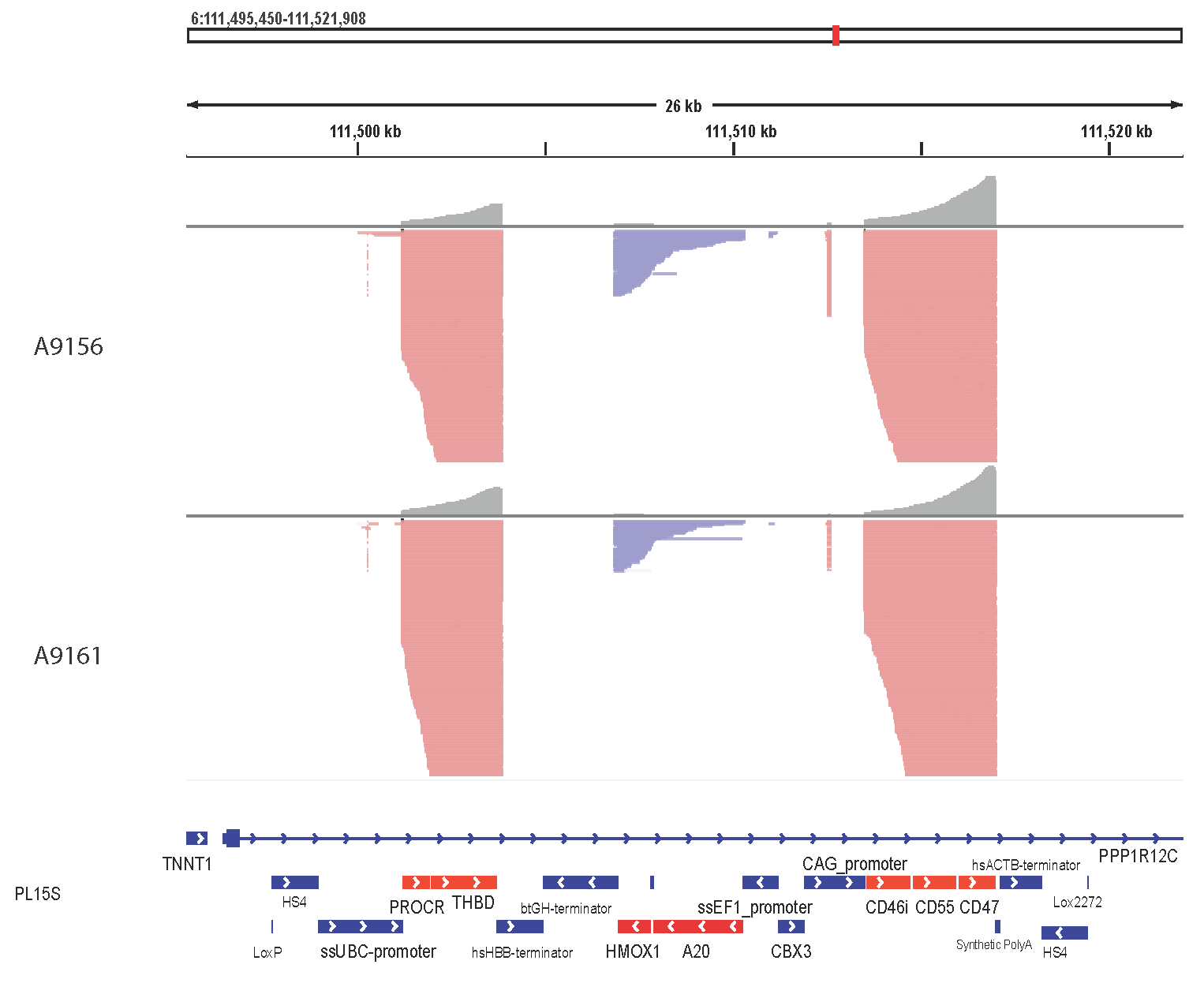 The porcine donor was engineered to carry a total of 69 genomic edits that eliminate xenoantigens, overexpress human transgenes, and inactivate porcine endogenous retroviruses. Long-Read Whole Genome Sequencing revealed the presence of a single copy, intact transgenic construct at the AAVS1 genomic safe harbor site. In addition, Nanopore direct RNA sequencing showed transcription from all 3 cassettes (Figure 1), while single cell RNA sequencing demonstrated expression of human transgene mRNA in renal endothelial cells. At the protein level, immunohistochemistry detected human transgenic proteins in kidney cells. Expression was maintained among littermates of cloned donors, across cloning rounds, and during graft survival in the NHP model.