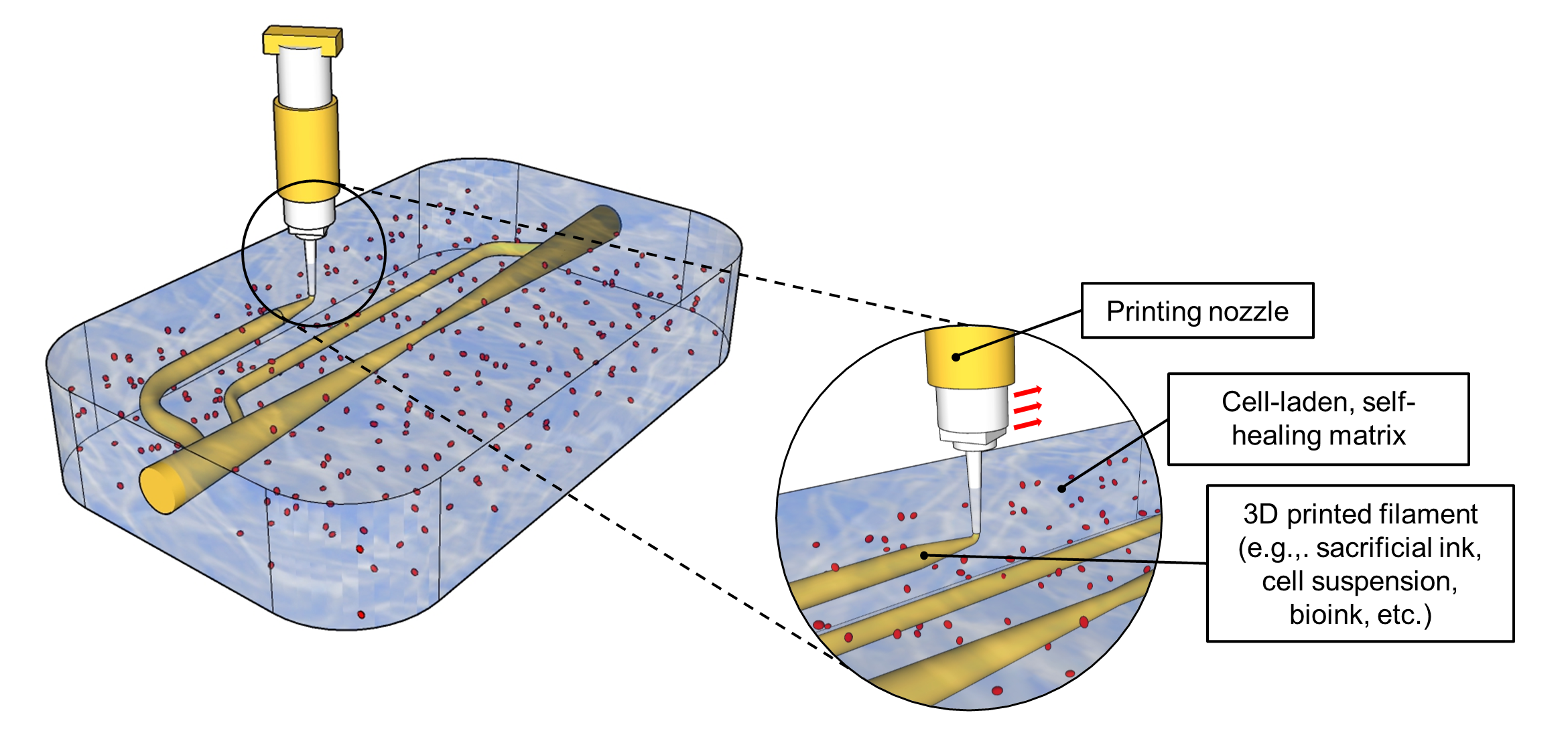 [2] Skylar-Scott, M. A., Uzel, S. G., Nam, L. L., Ahrens, J. H., Truby, R. L., Damaraju, S., & Lewis, J. A. Biomanufacturing of organ-specific tissues with high cellular density and embedded vascular channels. Science advances. 2019; 5(9), eaaw2459.