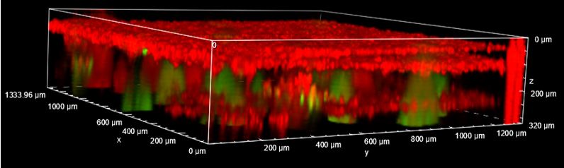 Methods: NUNC UpCell dishes were used to create cell sheets from immortalized MSCs. Several cell sheets were stacked on top of each other to encapsulate human donor islets in-between in a sandwich like construct. Prevascularization was done by co-culturing human umbilical vein endothelial cells and iMSCs in separate cells sheets which can be added to the sandwich construct. We studied the distribution of the different cells, beta cell aggregates and islets, using confocal fluorescence microscopy by a combination of GFP expressing beta cells and immunofluorescence, and beta cell function using GSIS.