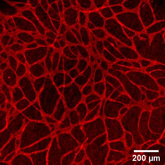 Results: Optimization of culture protocols of cell sheets lead to stable and easy to handle iMSC sheets. Stacking of multiple cell sheets further improved the stability and handling of the multilayered cell-based construct in which islets and beta cell aggregates can be retained (Figure 1). The embedded islets were able to secrete insulin in response to glucose once embedded inside the cell construct. Furthermore, co-culture of HUVECs and iMSCs lead to a dense vascular like network within cell sheets (Figure 2).